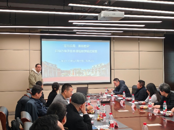 本次会议设置专题教学论坛与赛事交流两大核心板块。在“沪上电力电子技术发展与教学论坛”环节,多位骨干教师带来精彩分享:同济大学王汉卿老师聚焦课程建设核心痛点,分享了理论课程建设、创新性课程设计及综合性项目制实践等方面的优化经验,并介绍了胡波、钱挺等教师在学科竞赛中取得的优异成绩;上海交通大学王勇老师围绕电力电子“十四五”规划教材建设,详解编写思路与育人适配性;上海理工大学杨迪瑞老师分享了“面向应用、兼顾差异”的教学模式探索;上海大学杨影老师围绕《电力拖动自动控制系统》教材修订与AI赋能课程建设,分享了实践经验;同济大学康劲松老师结合同济大学在电动汽车、轨道交通领域的学科特长,从交通-能源融合视角分享了课程建设经验。
