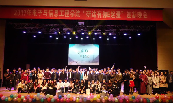 时光荏苒,岁月如梭,2017年对同济大学来说是极富意义的一年,同济人迎来了110周年的校庆。12月7日,对电信人来说也是记忆犹新的一天,由学院研究生会主办的“研途有你E起爱”研究生迎新晚会在嘉定校区济人楼101报告厅成功举行。校党委学研工部副部长宋木生、校团委副书记高玉磊、学院党委副书记董变林、副院长尹学锋及各总支(系)领导、师生参加了活动,晚会独家赞助商华为上海研究所招聘调配部部长左峻疆先生和招聘经理乔智先生也应邀出席。